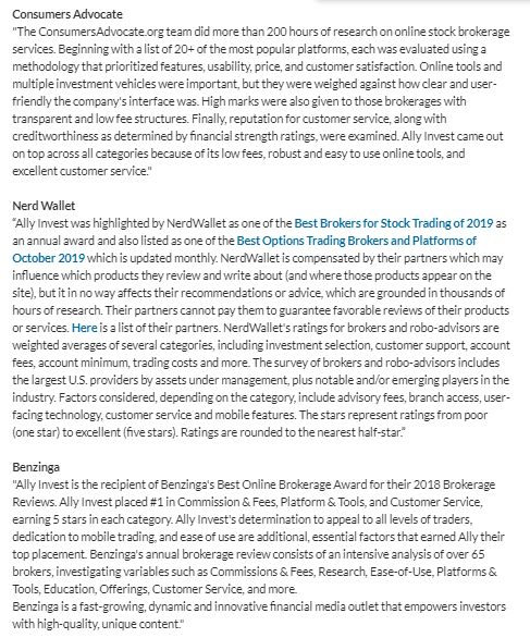 Those are some pretty strong words and recommendations from some very trusted companies. As I mentioned, I am currently with Fidelity but as I started to research more and more about Ally, I legit think that I have convinced myself to switch my account to an Ally brokerage account.