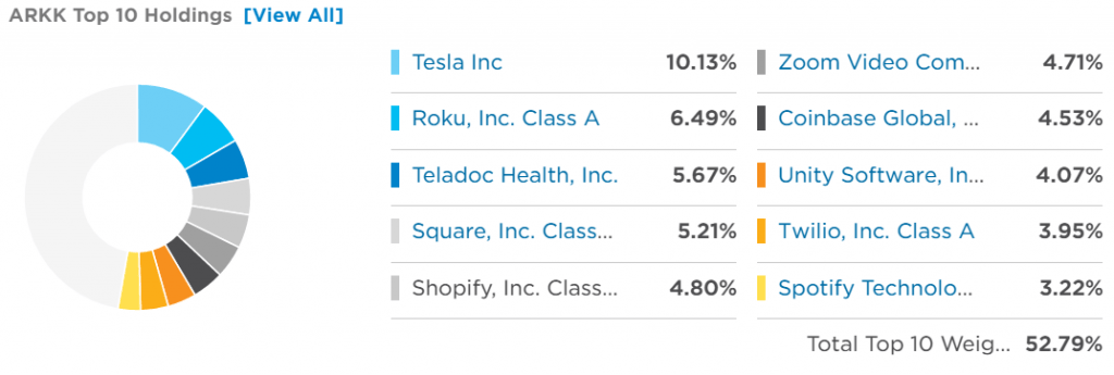It’s the companies that are always talked about on CNBC, trending on Twitter and heard about on various podcasts, so people view buying into ARKK as a way to potentially hedge their bets among various companies and also get a small piece of a ton of companies.