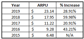 Anytime that I am evaluating the LTV of a company that is primarily focused on driving revenue, I make sure that I am looking at their ARPU to try to get an idea of how they’re doing. Let me explain:
