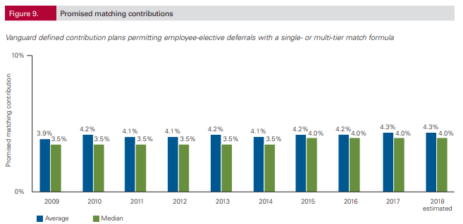 Overall, the average 401k match in 2018 in America was 4.3%: