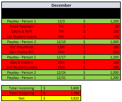 As you can see, it’s nothing that is overly mind-blowing. All this is showing me is when more money will be coming into my account, when money will be going out of my account, and providing me a great backbone for me to plan.