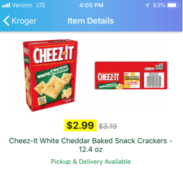 - Kroger – 14 total oz. for $5.79, or $.41/oz