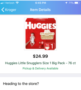 - Kroger – 76 diapers for $24.99, or $.33/diaper