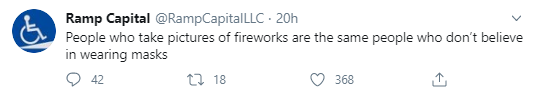 The last account on my list is Ramp Capital (@RampCapitalLLC). Ramp Capital is another fake account that constantly has me rolling on the floor laughing. Most of the tweets will have some sort of investing or stock market focus but they won’t all have that. Take a look at two recent great tweets below: