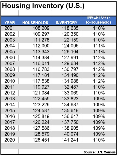 If we look back at the housing inventory-to-households charts I quoted earlier, this was NOT necessarily an indication of lower total supply.