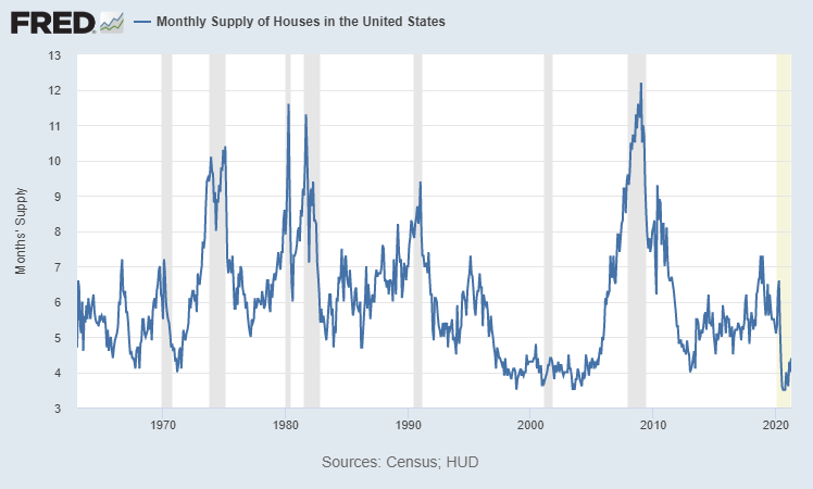 In other words, if we have more people looking to buy rather than sell at any given time this supply of houses statistic will greatly increase, and vice versa.
