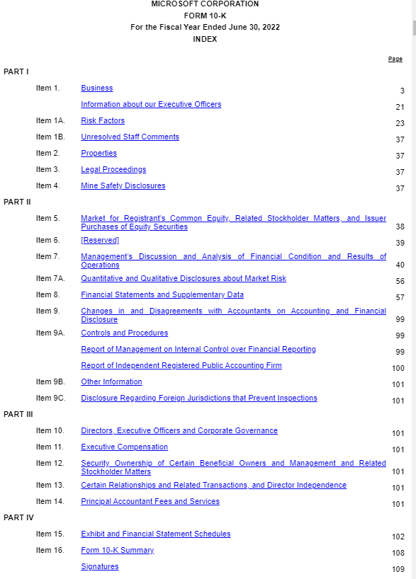 Each Section of the 10-K contains a wealth of information about how Microsoft makes money, any risks they face, what management thinks of past performance, and how they plan to grow.
