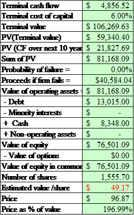 Result of valuation equals $49.17