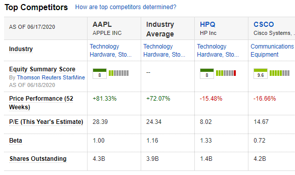 They have a very intuitive stock screener and also gives me the ability to easily compare multiple stocks at the same time. For instance, look at this screenshot below with AAPL:
