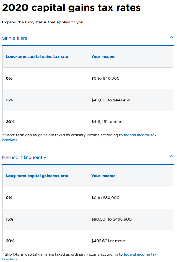 Now you can just take that $680K and run, right? Well, it depends! If you put your money in a Roth IRA then yes, you can go on and do your thang! If you put it in a normal brokerage account, then you can also just take it and run, but come April 15th of the next year, you’re going to owe some pretty serious taxes! The tax rates as of 2020 are listed below per NerdWallet: